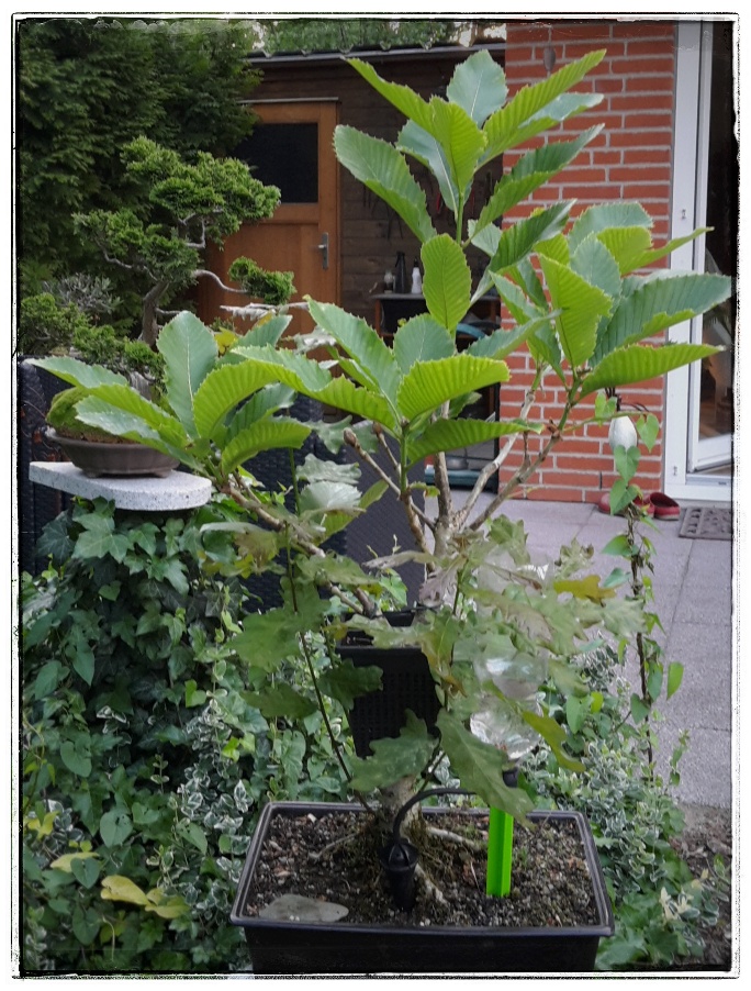 In diesem konkreten Fall betrifft es meine Kaukasuseiche (Kastanienblättrige Eiche oder Pontische Eiche). Ich habe den Baum ca. 3 Jahre in meinem Besitz. Bei genaueren Betrachten sieht man leicht, dass dieser gepfropft wurde.