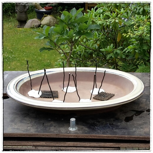 - Bonsaigranulat aufbringen und gut in die Zwischenräume einarbeiten (mit chin. Essstäbchen 😉